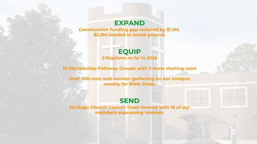 Peninsula is growing quickly. With a growth rate average of 19% over the last three years, our worship center seating will reach capacity within two years. But this moment isn’t just about numbers; it is about faithfulness to the mission Jesus gave us - to make disciples who make disciples. The Pathway Project is our response. It is a bold, forward-looking step designed to prepare us for long-term gospel impact through three strategic outcomes: expand, equip, and send.