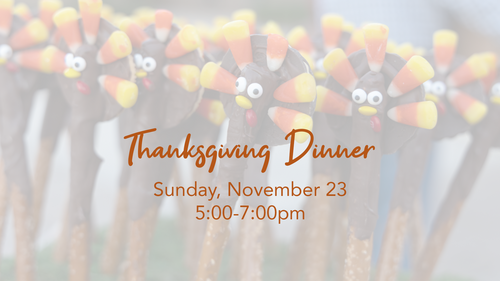 Kick off the holiday season with our Peninsula family! Join us for Thanksgiving Dinner on Sunday, November 23 from 5:00-7:00pm. We will provide dinner - we ask that you bring a dessert to share in a disposable container (the disposable container part is important). No registration needed for this event.